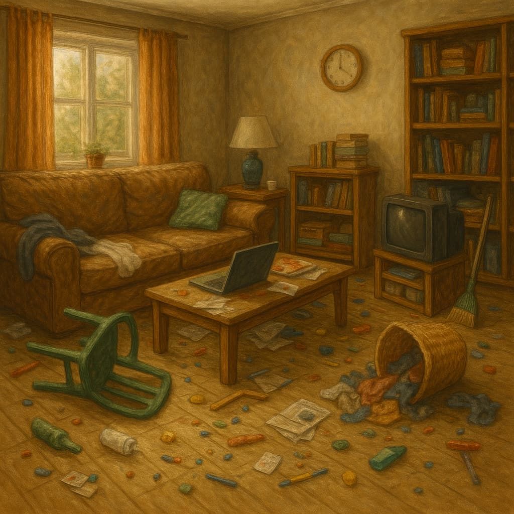 ’s Avonds tijdens het eten bespreek ik mijn irritatie én oprechte zorgen over de staat van het huishouden met man en kinderen. Ik zie verbaasde en lichtelijk geïrriteerde blikken (“Gaat het hier nou alweer over?!”). Blijkbaar ben ik de enige die het stof en vuil ziet…
